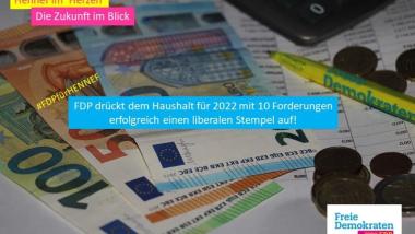 In seinem Entwurf zum Haushalt 2022 fehlten leider jegliche Ideen für neue Einnahmen oder wenigsten der Wille zu deutlichen, wenn auch schmerzhaften Einsparungen. Sein im Wahlkampf einst kühn proklamierter Spruch “Ich kann es besser“ war hier leider wohl mehr Wunsch als Wahrheit.