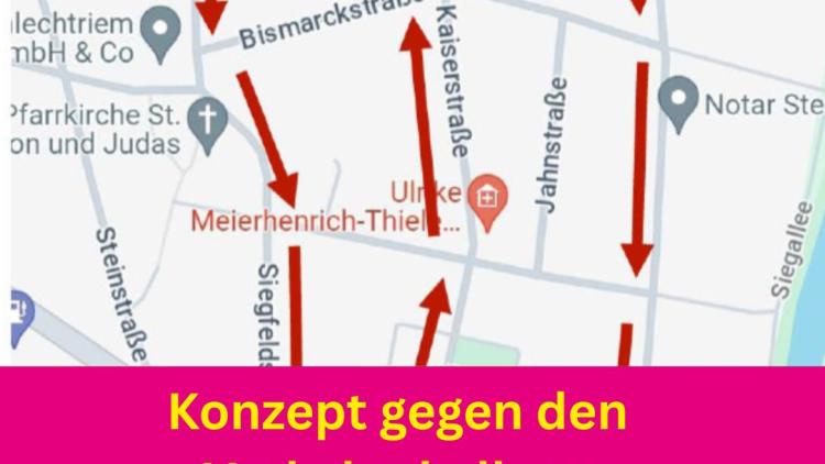 - Siegfeld- und Dickstraße: Einrichtung einer Einbahnstraße in Fahrtrichtung Süden (ab Höhe Cecilien-/Dickstraße).